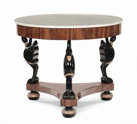 Tavolo tondo Impero lastronato ed ebanizzato, XIX secolo