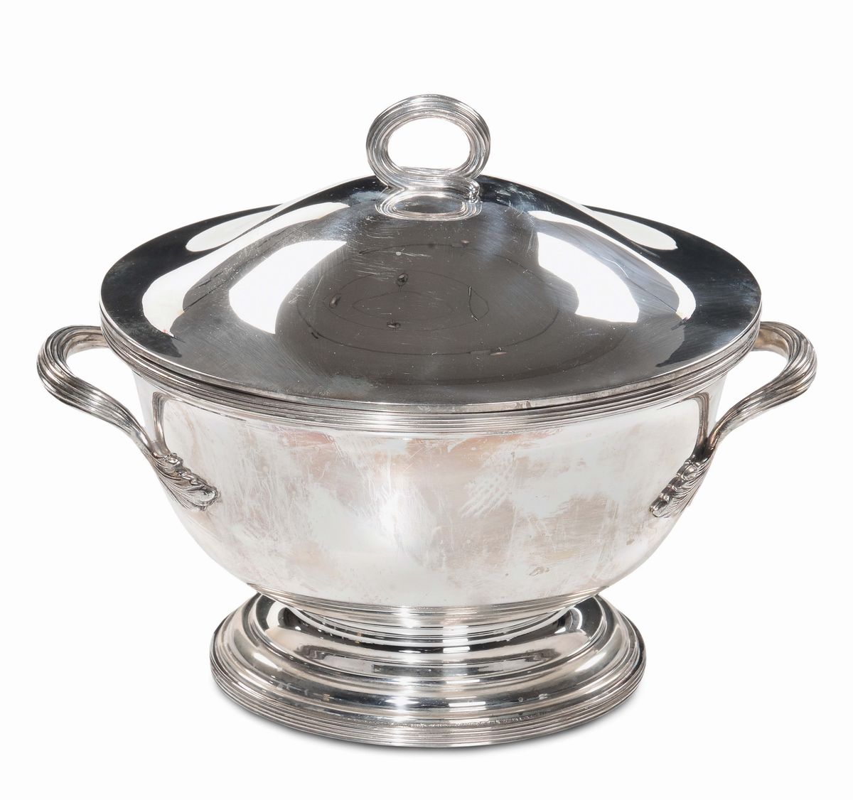 Zuppierina con coperchio in argento sterling, Argentiere Fasano, Italia XX Secolo