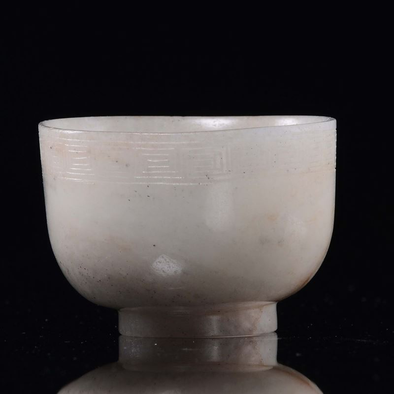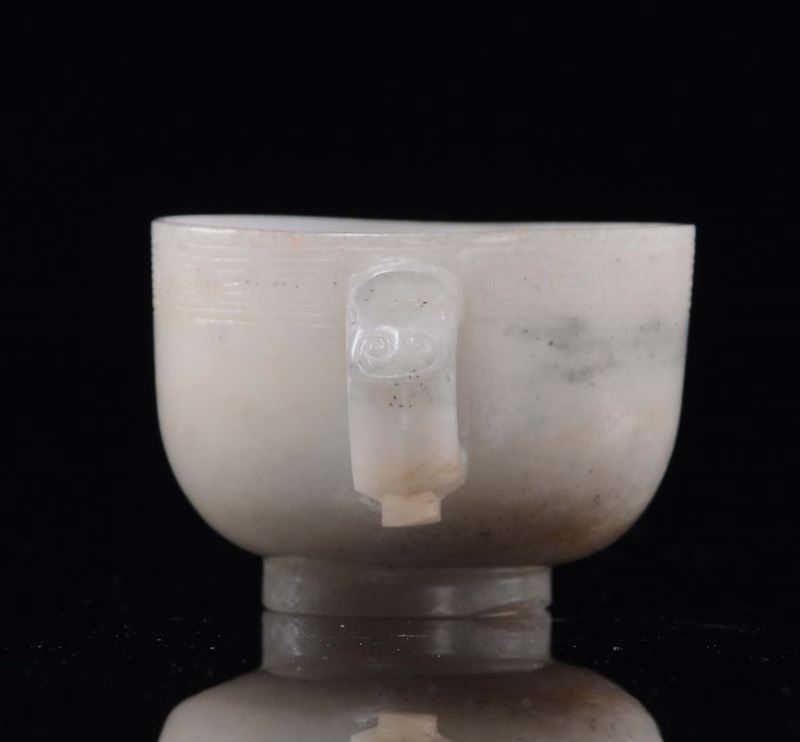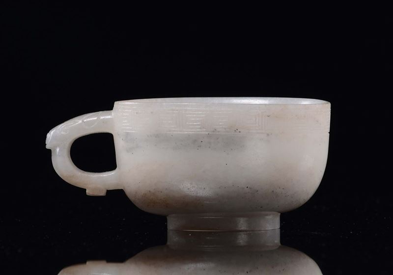 Coppetta con manico in giada bianca, Cina, Dinastia Qing, epoca Qinalong (1736-1795)