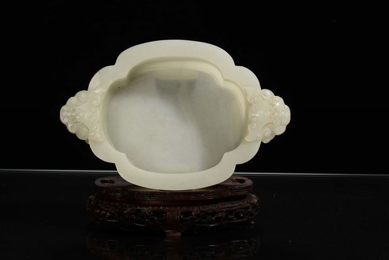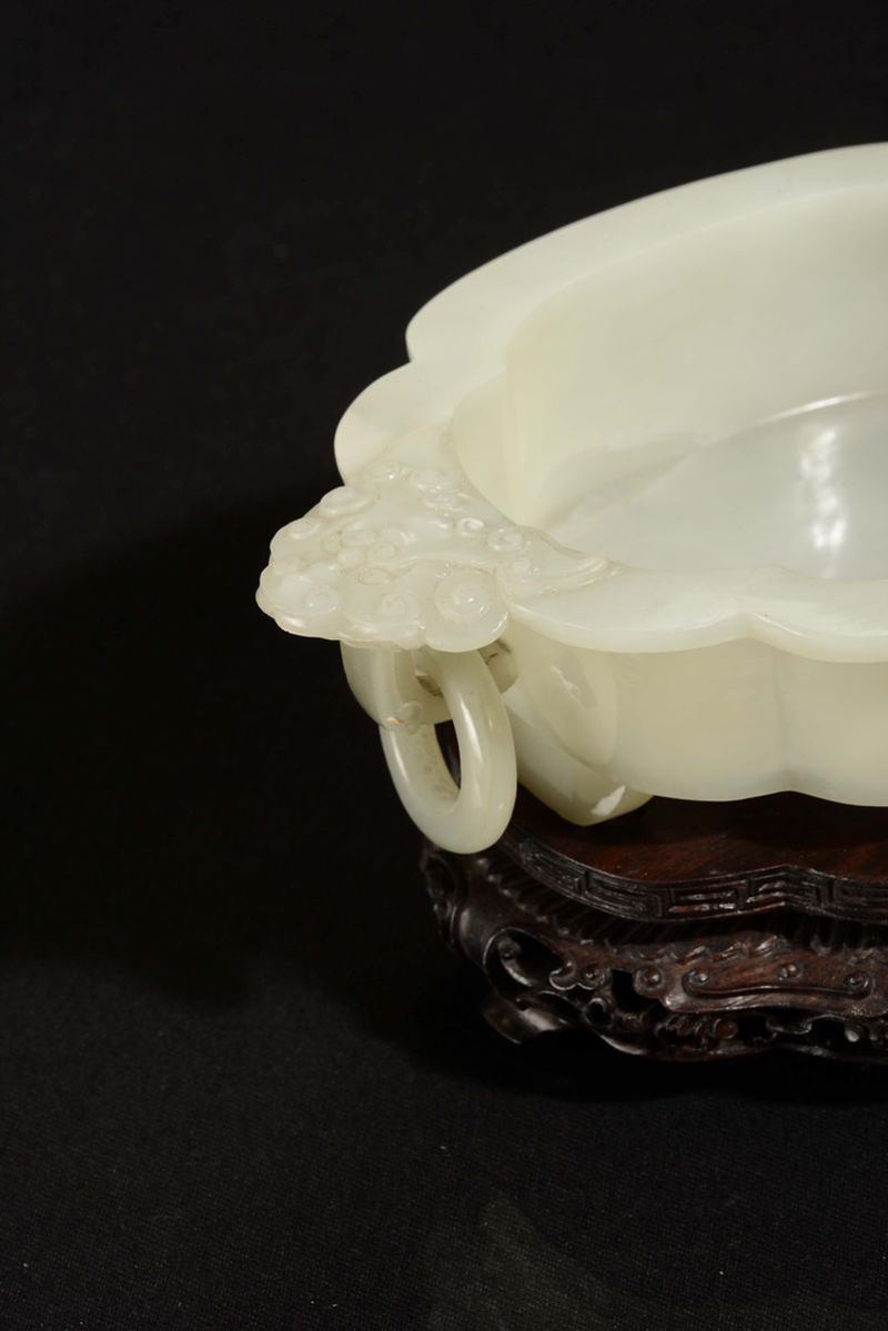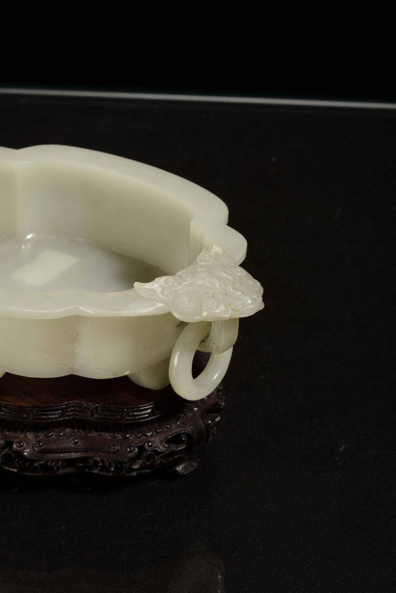 Coppetta lobata in giada bianca Celadon, Cina, Dinastia Qing, XIX secolo