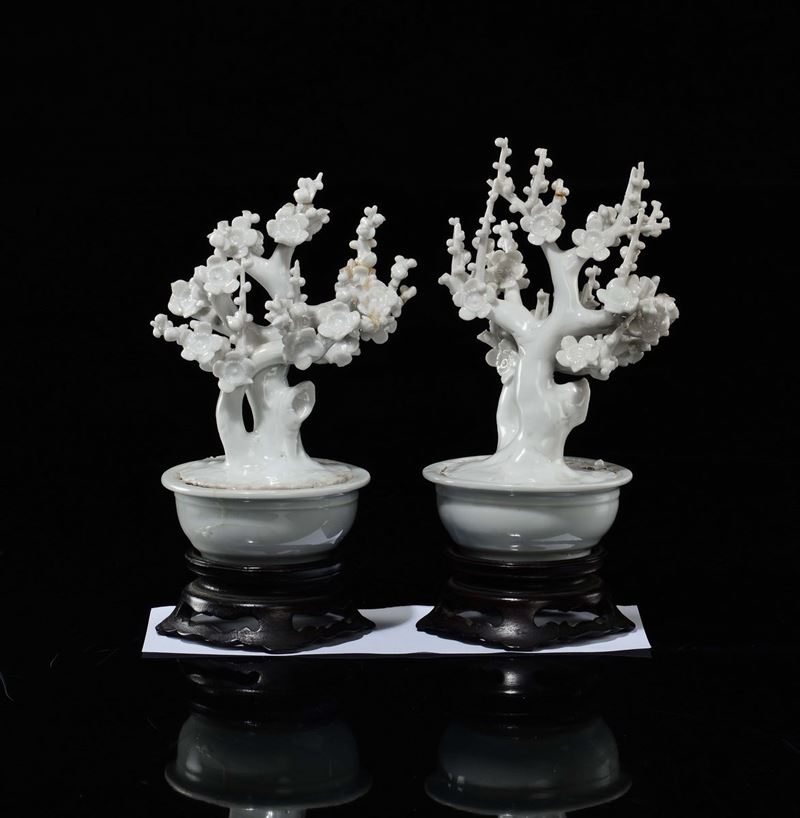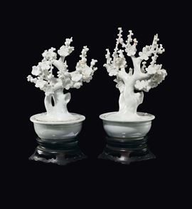 Coppia di alberelli in porcellana Blanc de Chine, Cina, Dinastia Qing, fine XVIII secolo
