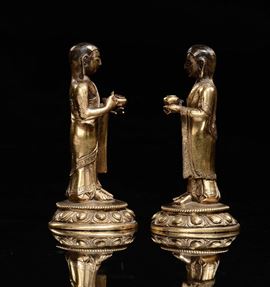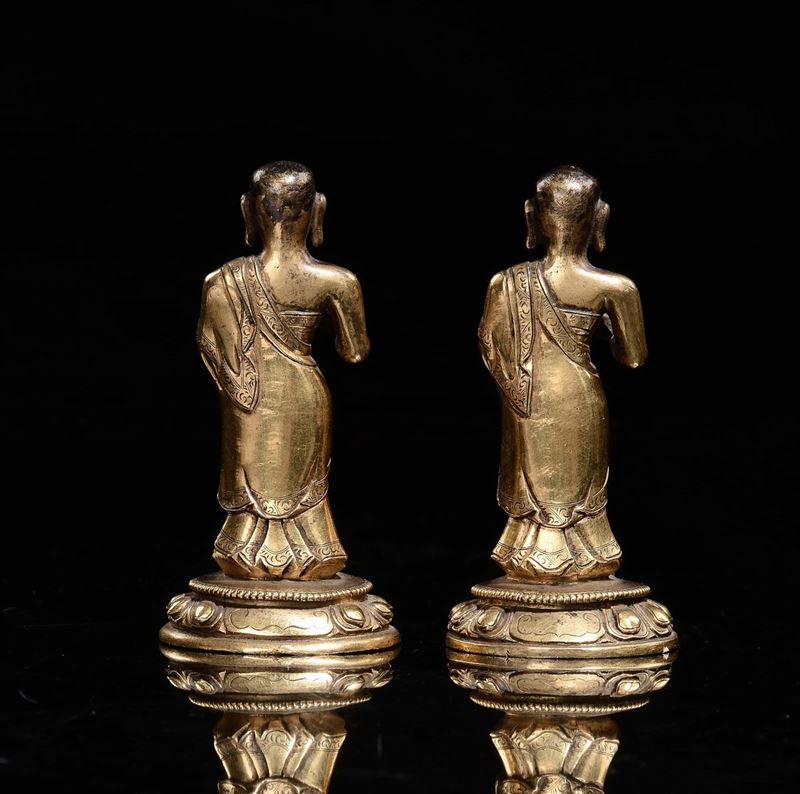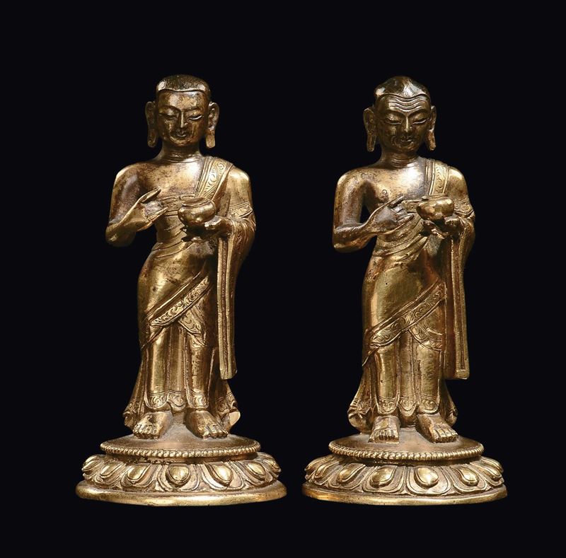 Coppia di Bodisatva in bronzo dorato, Tibet, XVII secolo