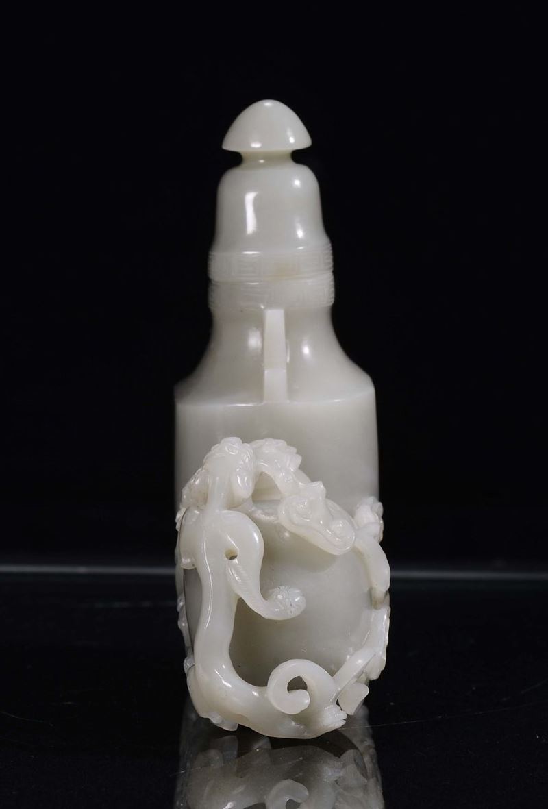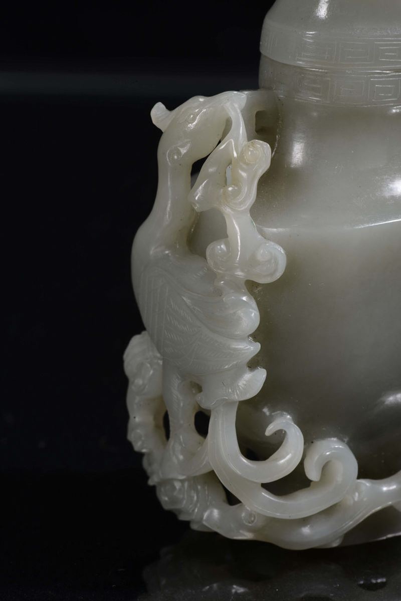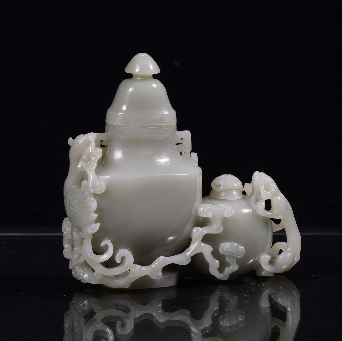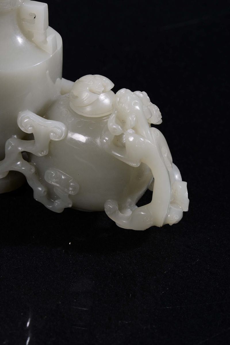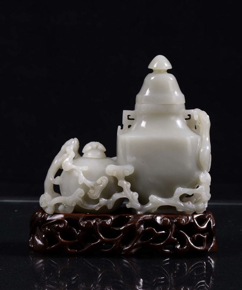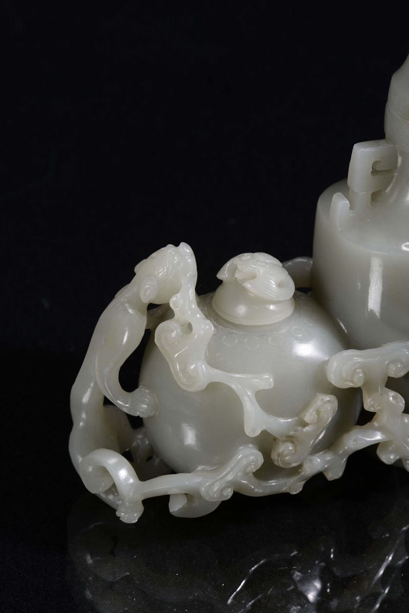 Coppia di vasetti ricavati da una sola pietra di giada grigia, Cina, Repubblica, XX secolo