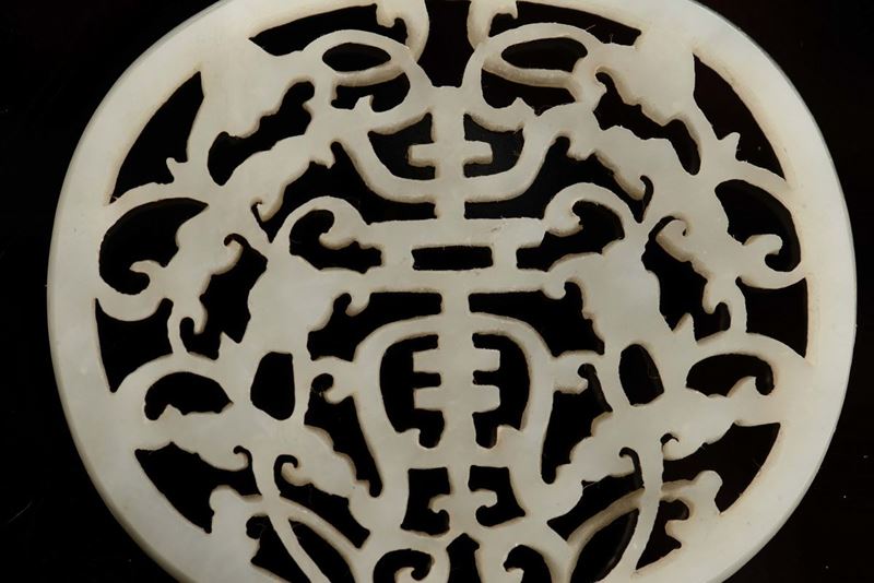 Due placche in giada Celadon traforata a decoro naturalistico, Cina, Dinastia Qing, XVIII secolo