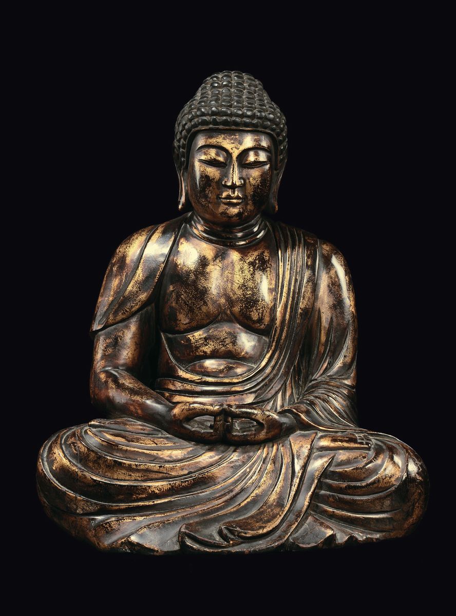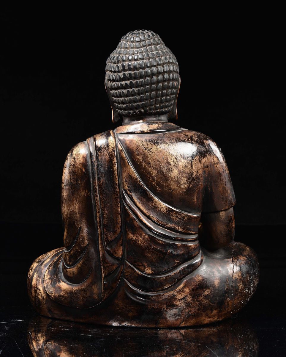 Figura di Buddha in legno laccato e dorato, Corea, Dinastia Choson, XVIII secolo