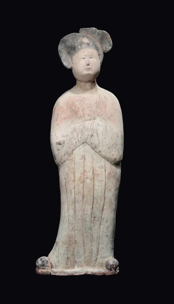 Figura di Fat Lady in terracotta dipinta, Cina, Dinastia Tang (618-906)