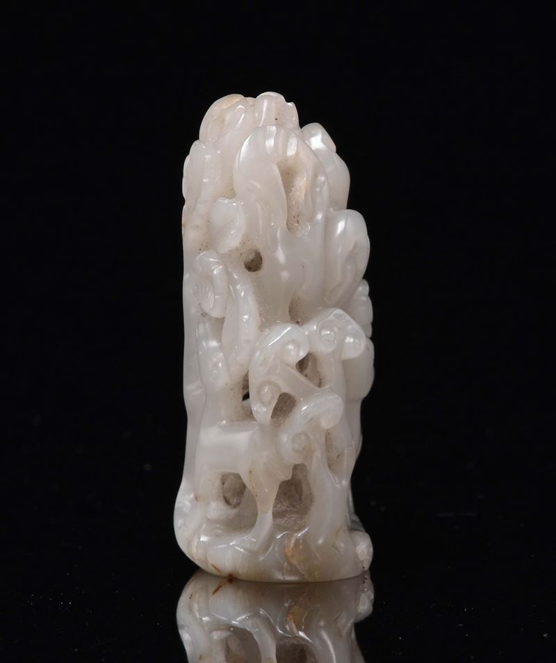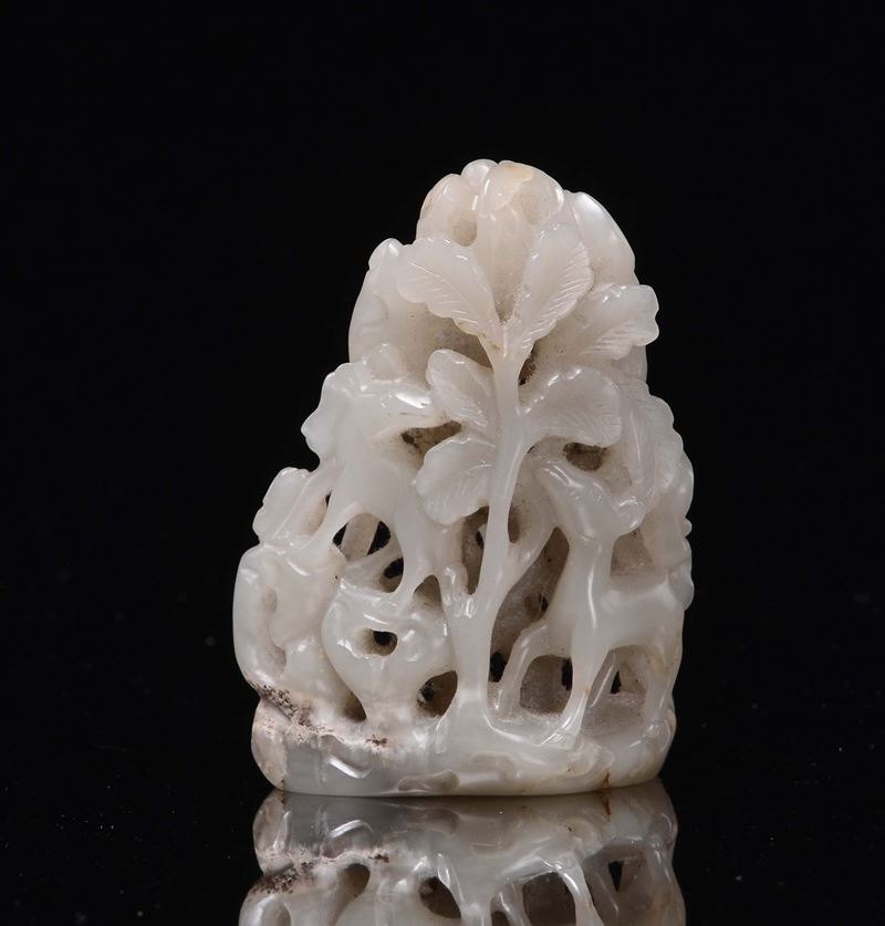 Gruppo in giada bianca raffigurante cerbiatti tra gli alberi, Cina, Dinastia Ming, XVII secolo