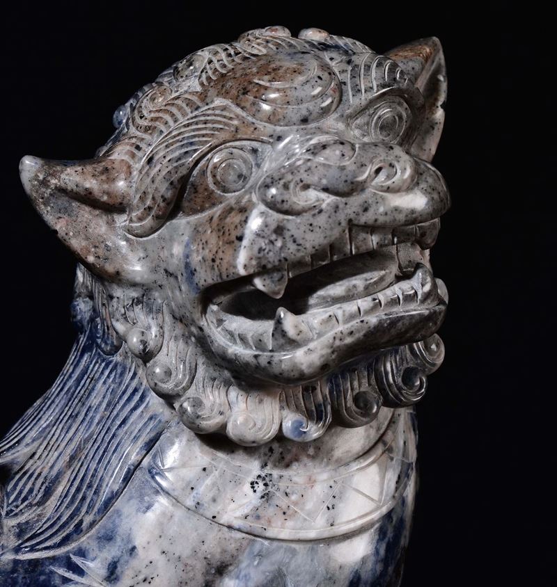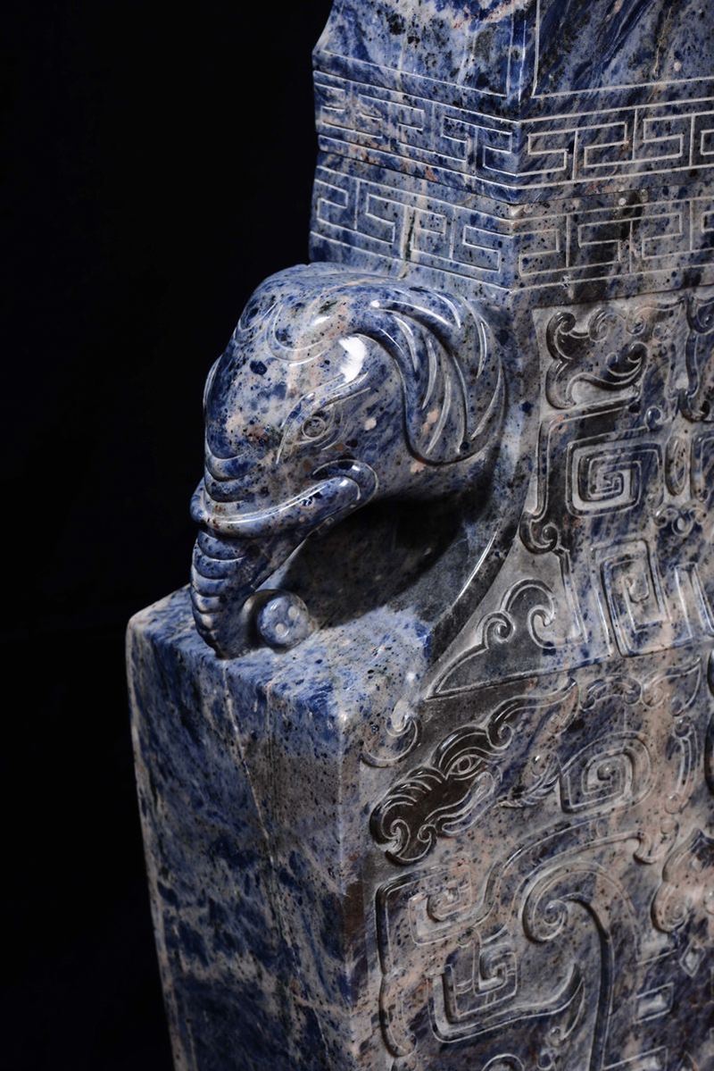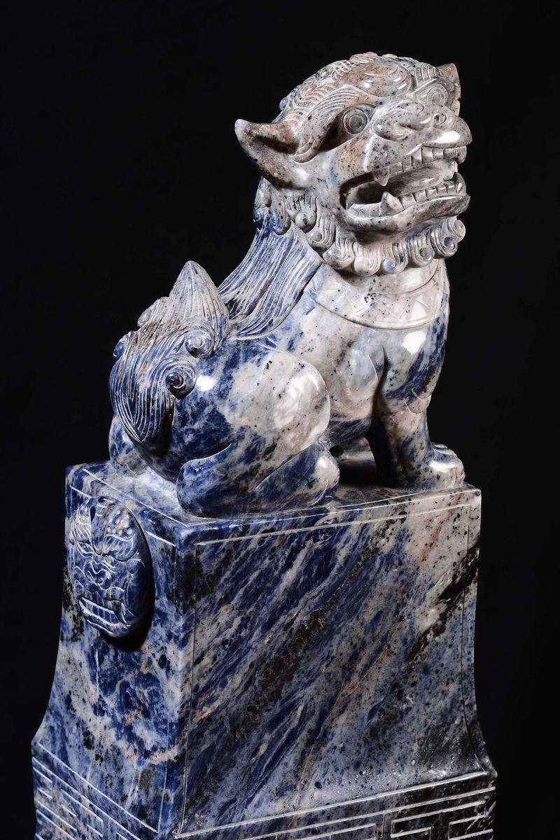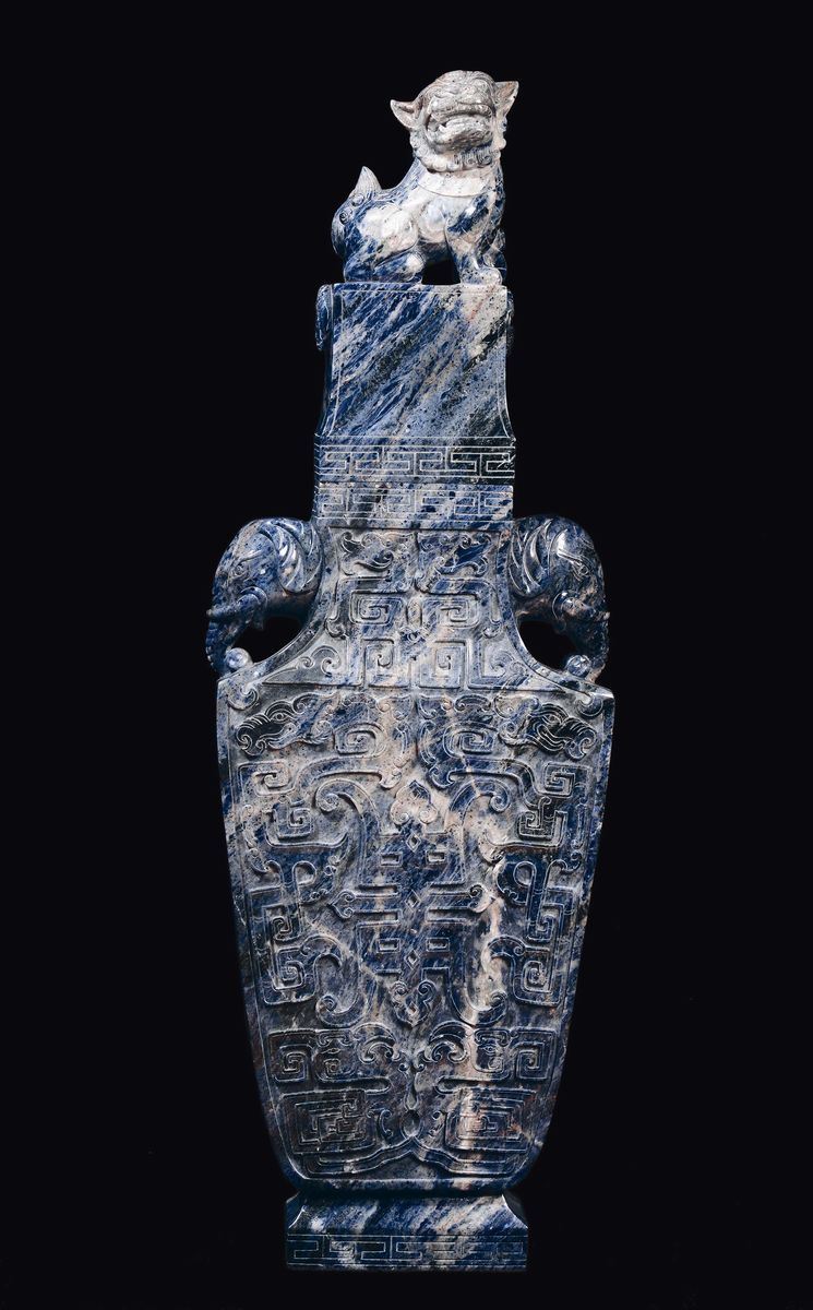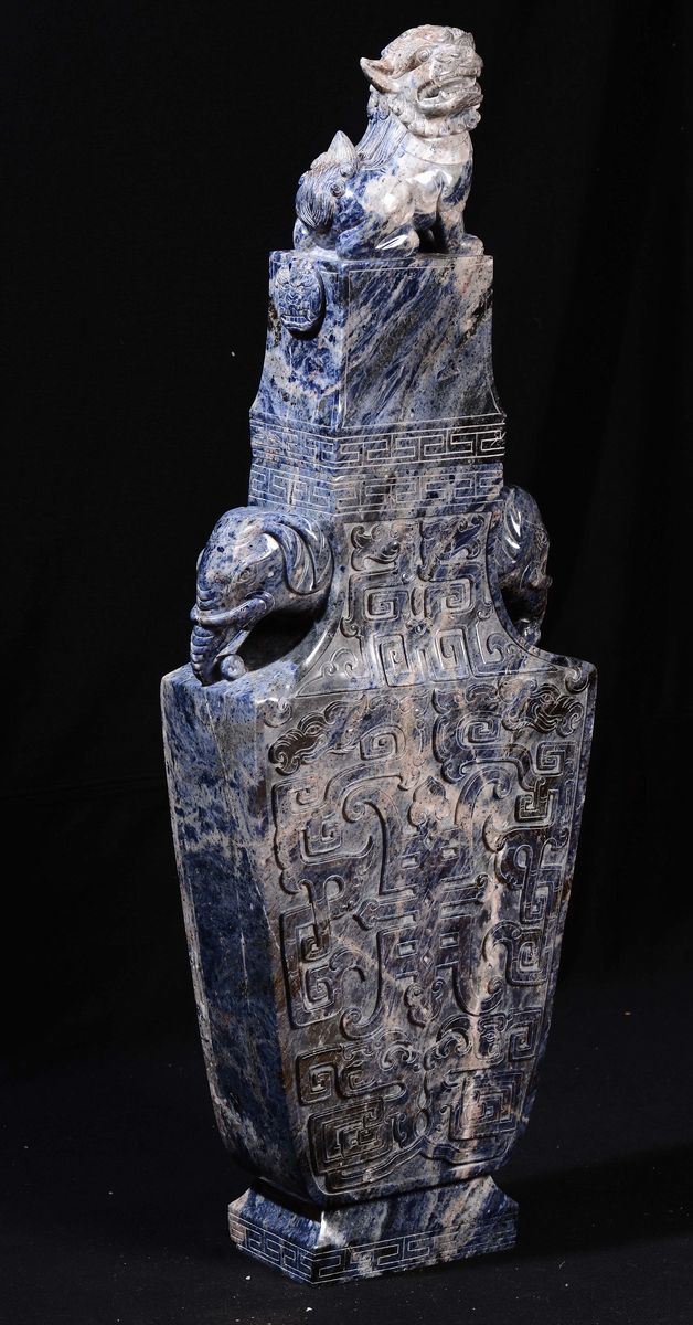 Importante vaso in lapislazzulo con coperchio sormontato da cane di Pho, Cina, XX secolo