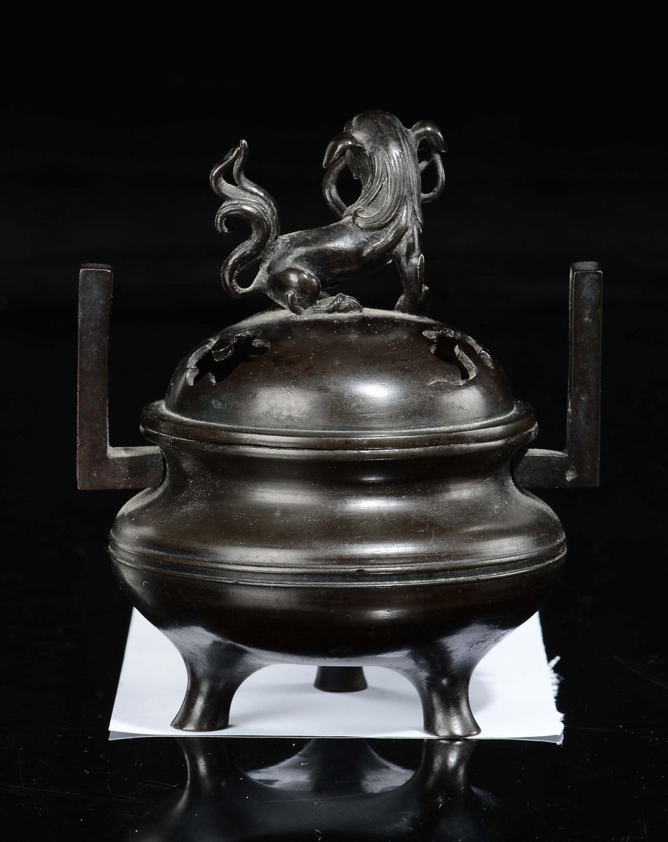 Incensiere in bronzo con coperchio sormontato da cane di Pho, Cina, Dinastia Qing, XVIII secolo