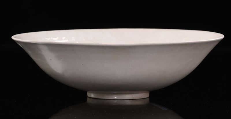 Piatto Ding color avorio con ninfee a rilievo, Cina, probabilmente Dinastia Song (960-1279)