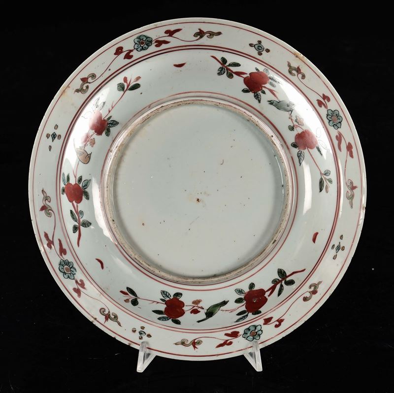 Piatto in porcellana Kinrande con pesci rossi e fiori, Giappone, fine XIX secolo