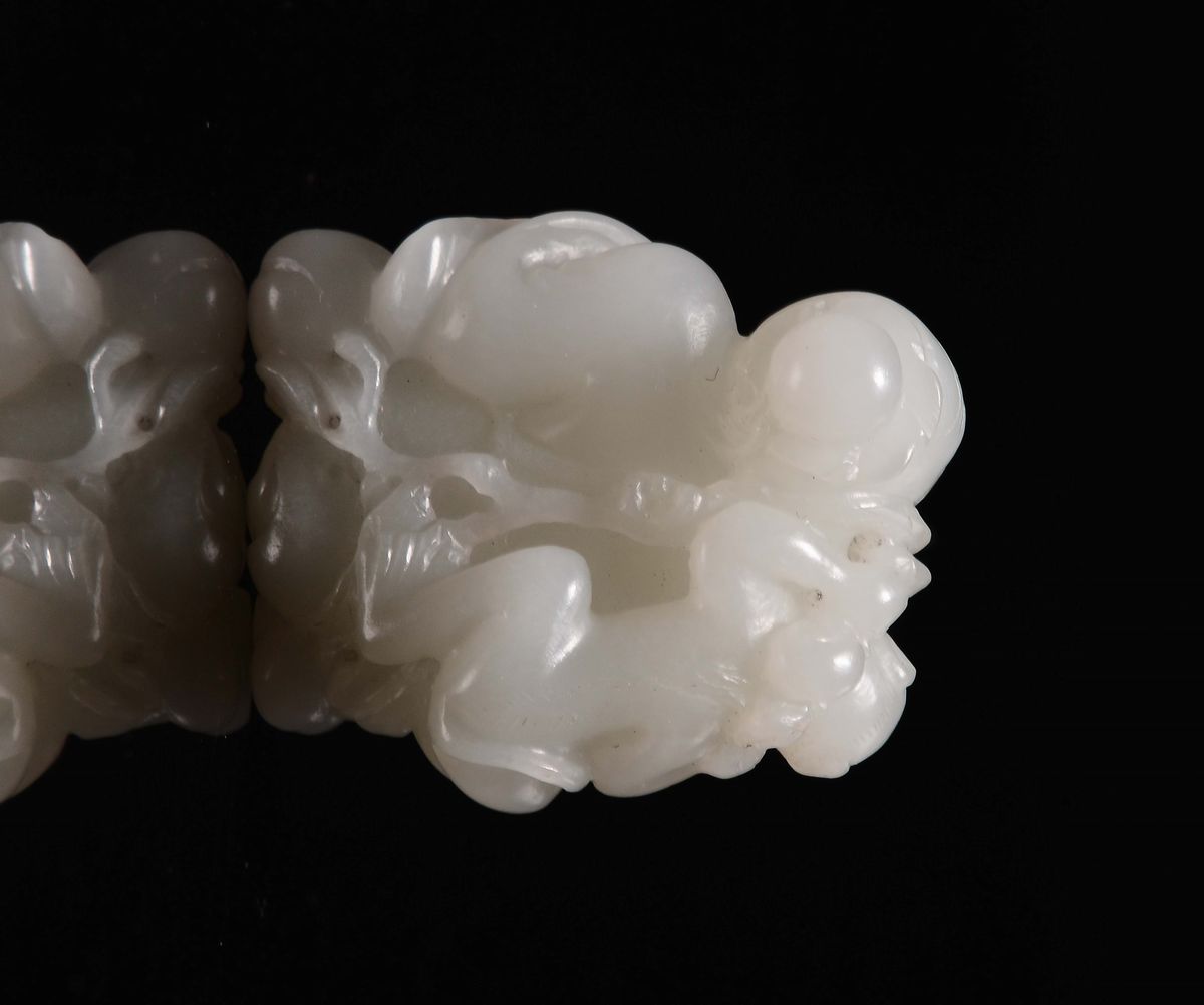Piccola figura di saggio in giada bianca con scimmia poggiata sulla spalla scolpito, Cina, Dinasta Qing, epoca Qianlong [..]