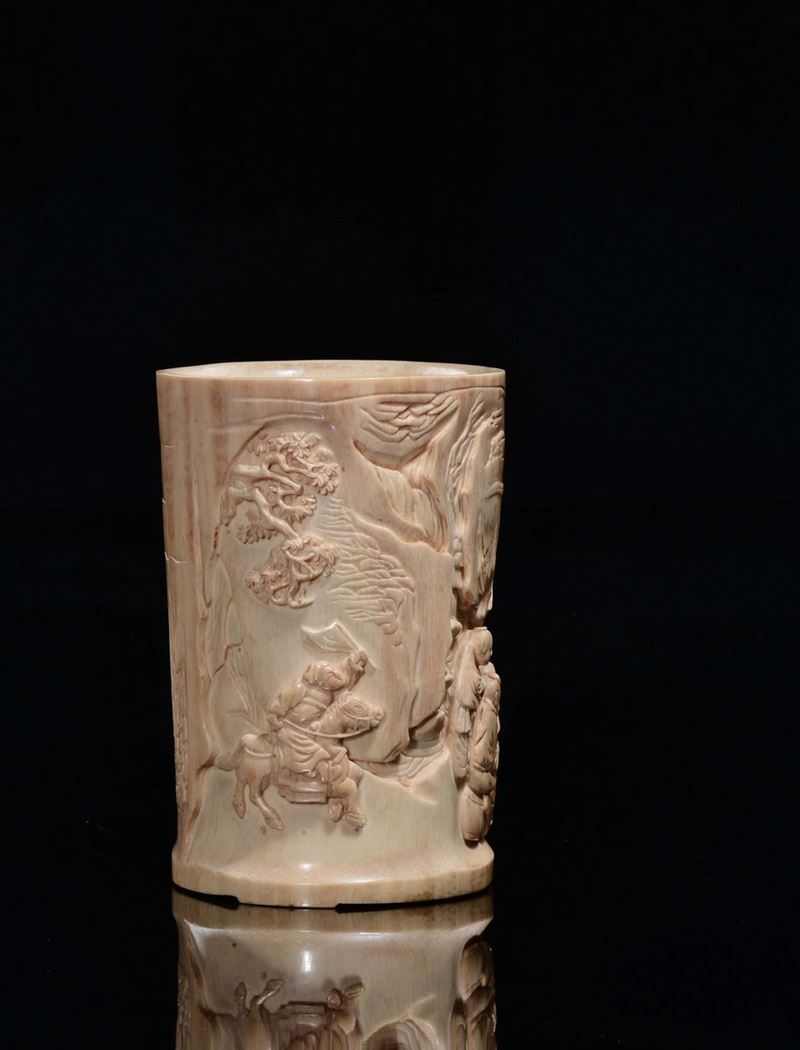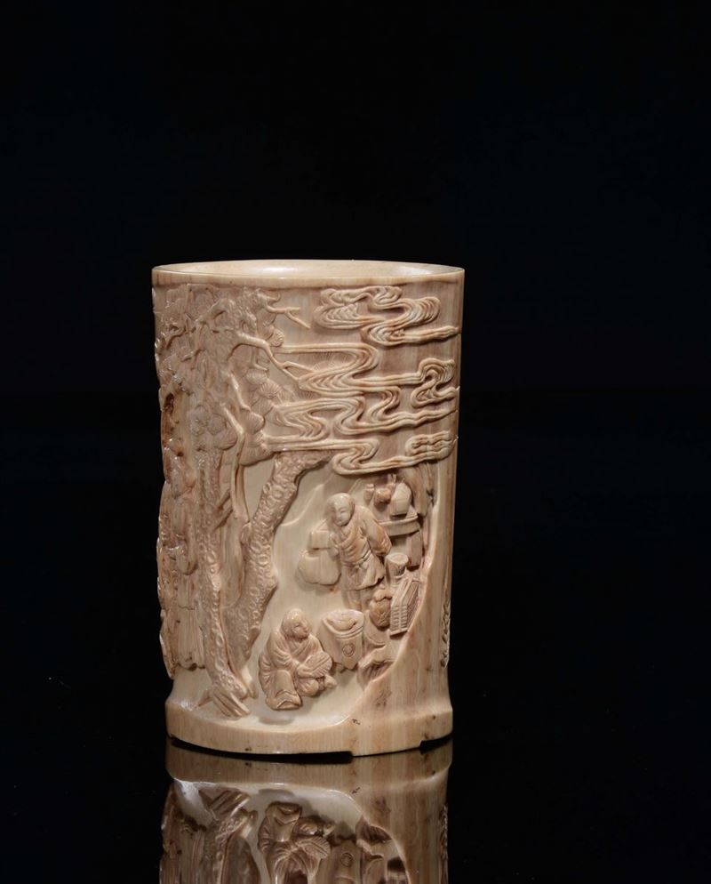Portapennelli in osso con scene di vita comune, Cina, Dinastia Qing, XIX secolo