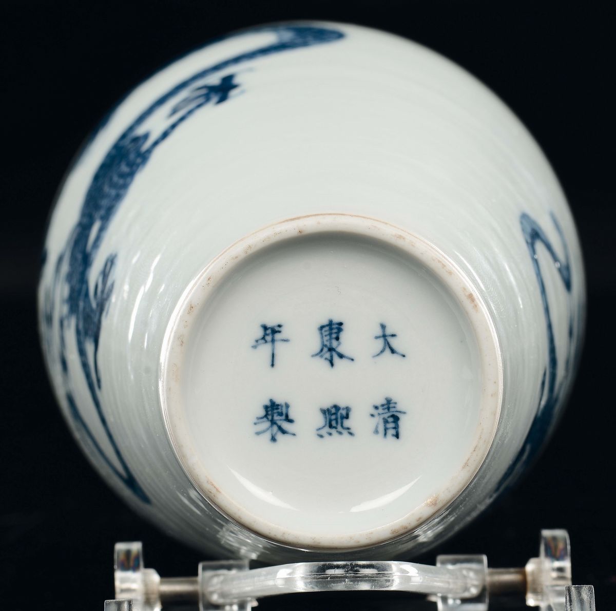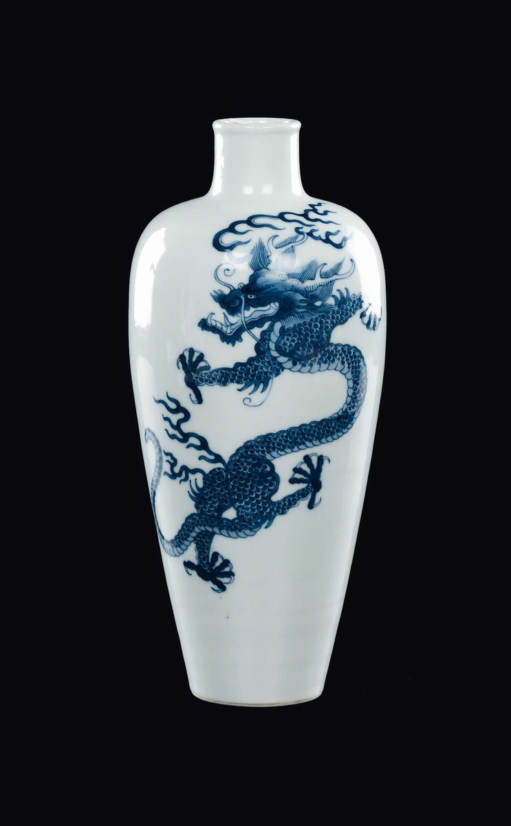 LOTTO RITIRATO Raro vaso in porcellana bianca e blu con decoro di draghi, Cina, Dinastia Qing, marca e del periodo Kangxi (1662-1722)