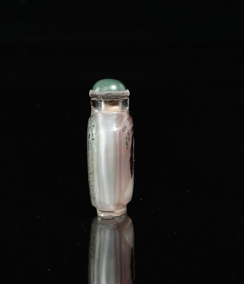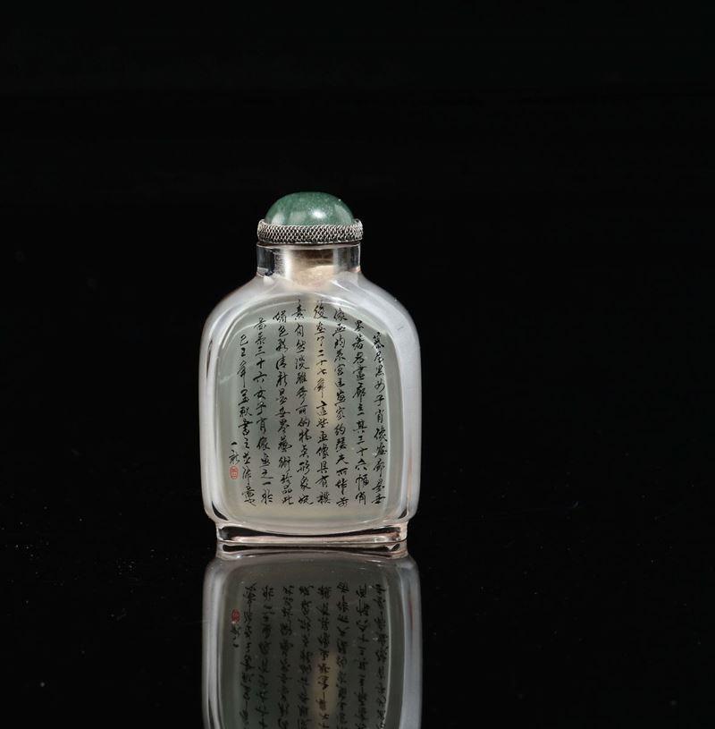 Snuff bottle in cristallo di rocca con dipinto di Ding Hong, Cina, XX secolo