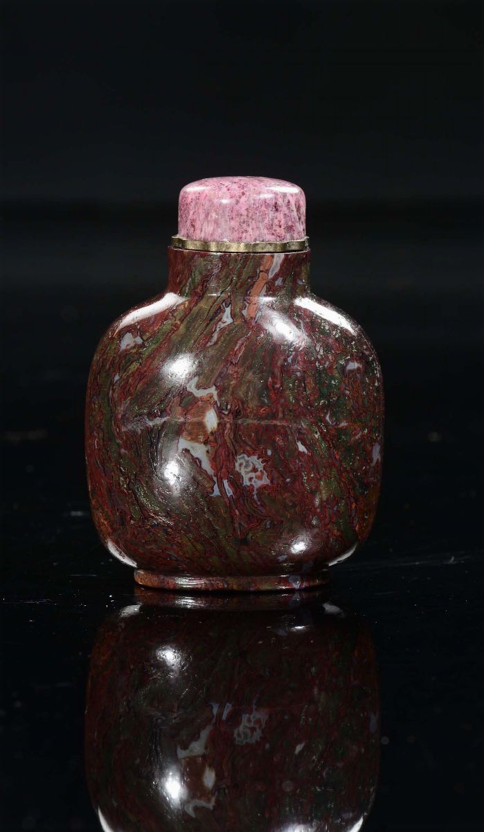 Snuff bottle in diaspro con tappo rosa, Cina, Dinastia Qing, XIX secolo