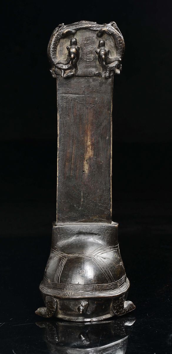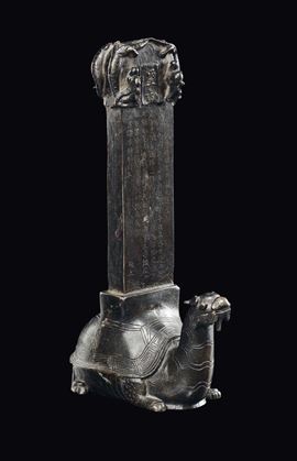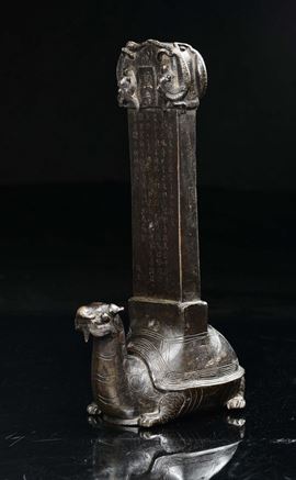 Tartaruga in bronzo che sorregge placca con iscrizioni, Cina, Dinastia Ming, XVII secolo