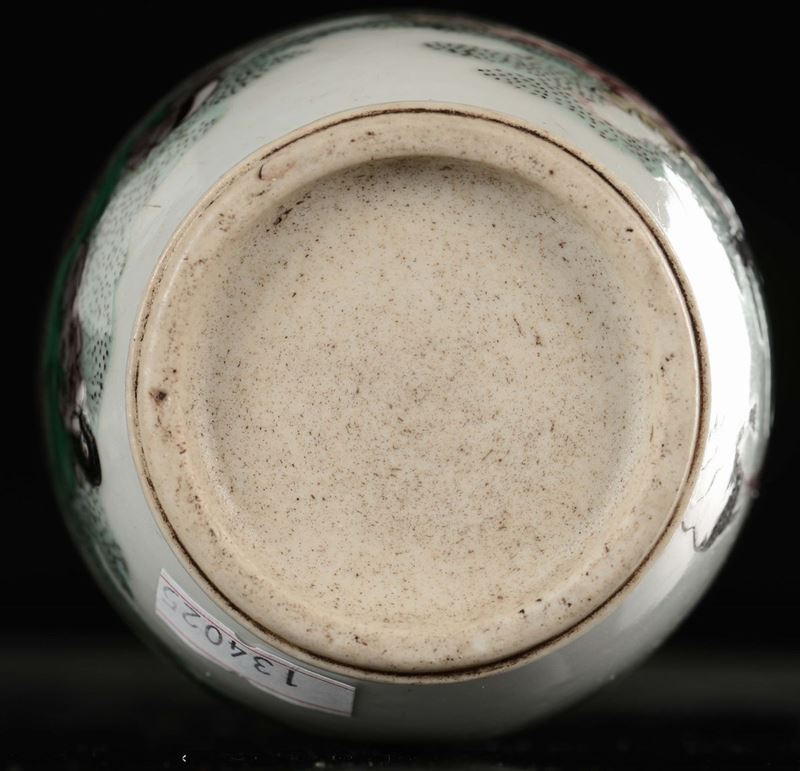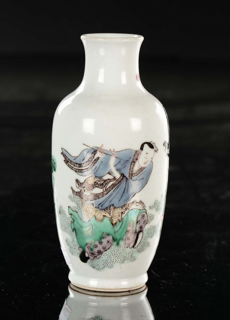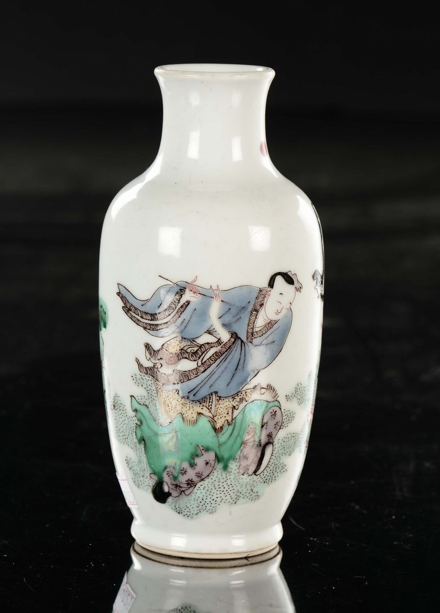 Vasetto in porcellana policroma con due saggi e un rospo, Cina, Dinastia Qing, XIX secolo