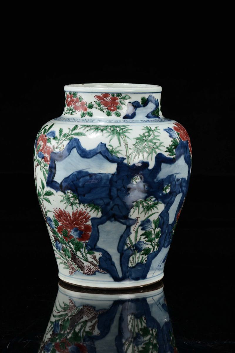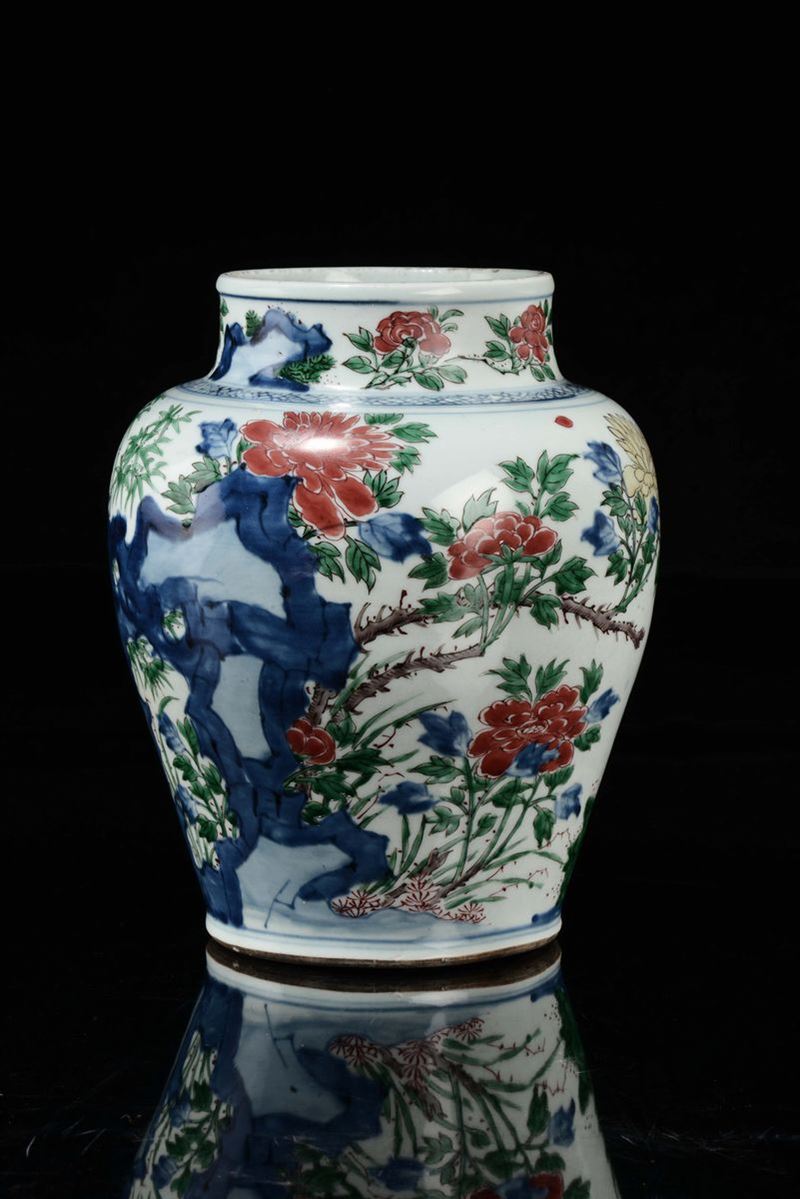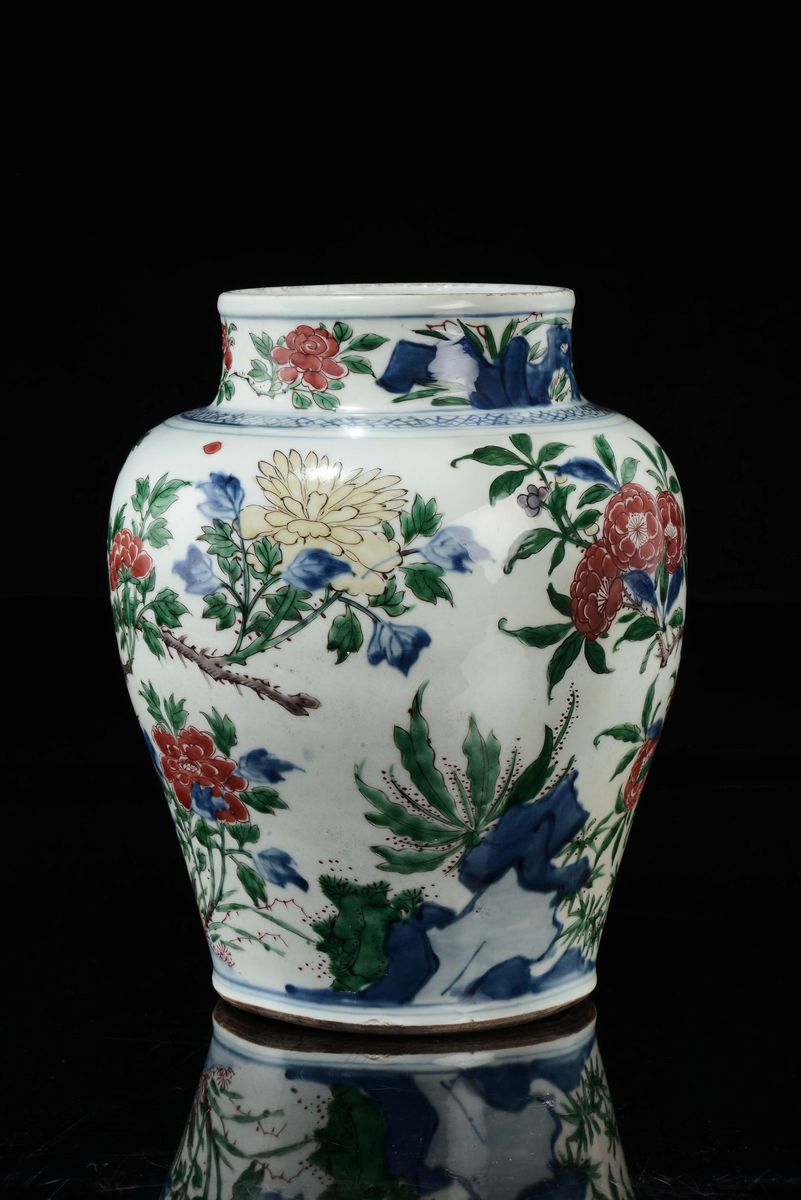 Vaso in porcellana policroma a decoro floreale, Cina, Dinastia Qing, epoca Shunzhi (1644-1661)
