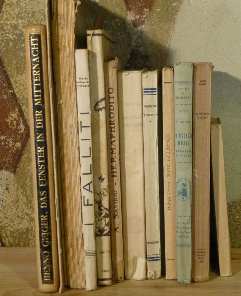 Firenze,Libreria della Voce.s.d.Si uniscono nel lotto:Almanacco della Voce,1915(Mancante del dorso). Adolfo Wilt,L'arte del marmo,Milano,Hoepli,1921. Remigio Zena,Oympia,Milano Libreria Editrice Lombarda,s.d. e altri 10 volumi alcuni con dedica a F.Pastonchi.