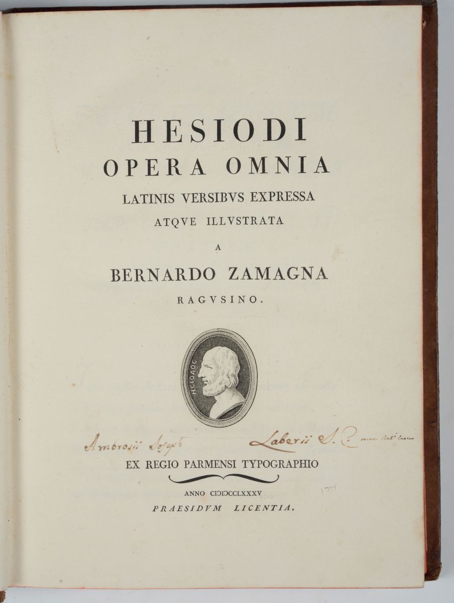 Bodoni - Esiodo Hesiodi opera omnia latinis versibus expressa atque illustrata a Bernardo Zamagna ragusino