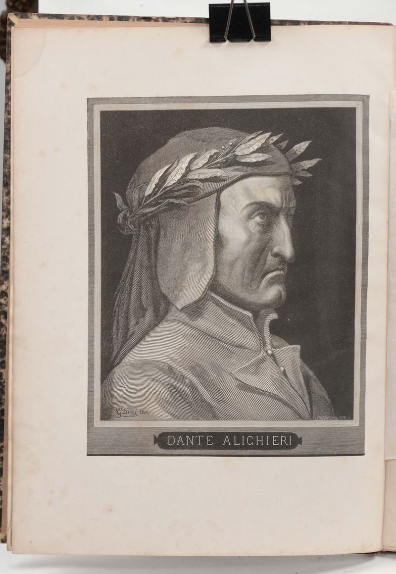 Milano,Sonzogno,1868. Tre volumi. Grande in-folio.Legature in mezza pelle con dorsi rotti e abrasioni ai piatti. Interno fresco e ben conservato. Celebre edizione, per quanto assai comune,impreziosita dal genio inventivo di Gustave Doré.