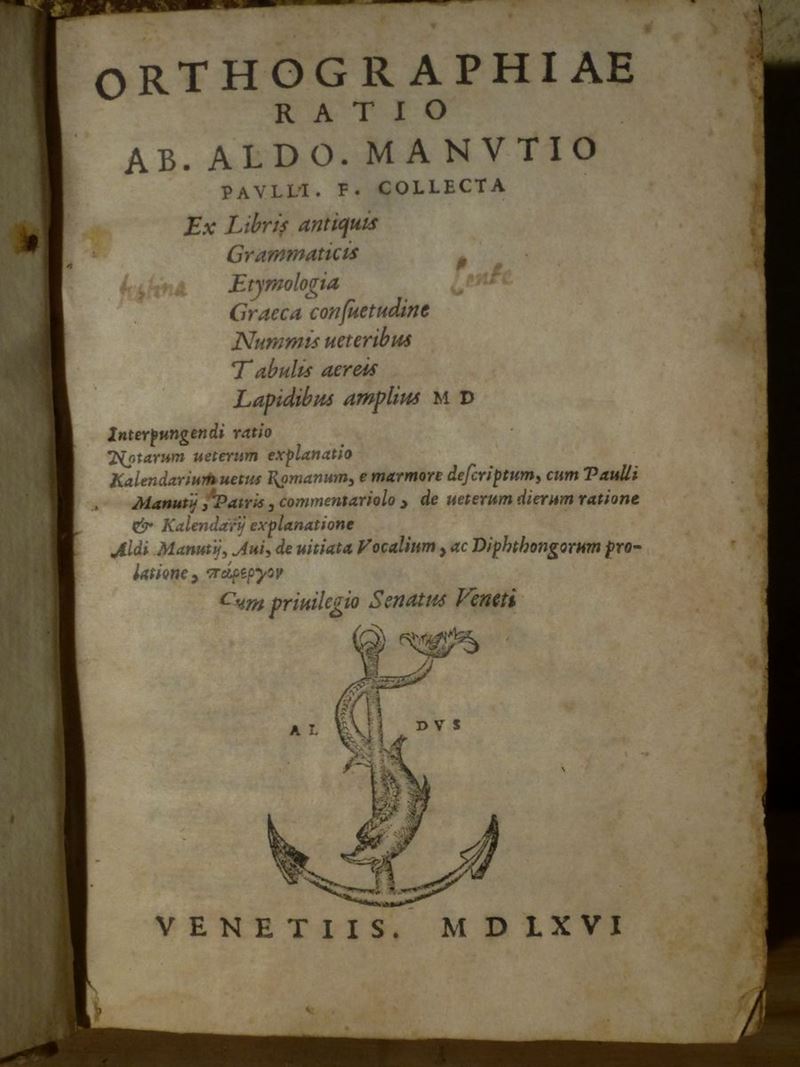 Orthographiae ratio ab Aldo Manutio paulii.F.Collecta..