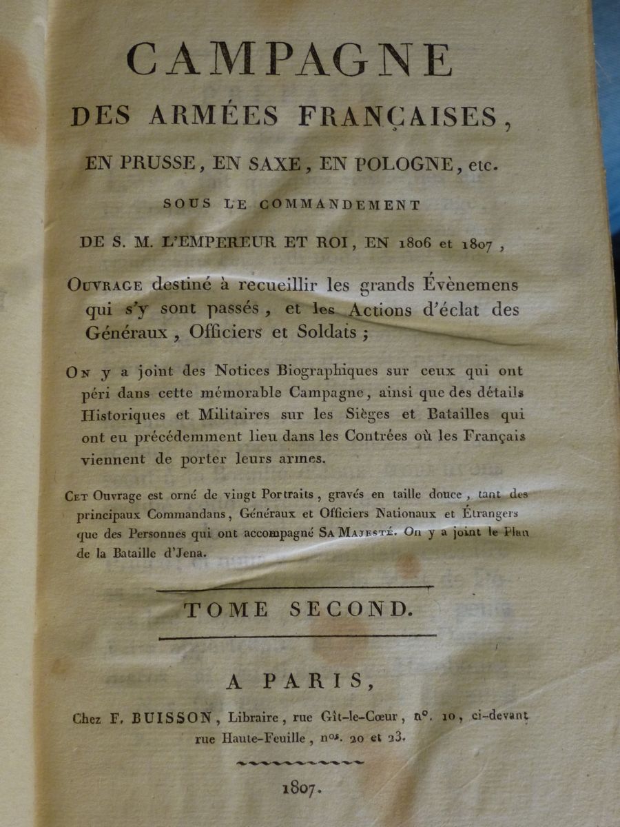 Campagne des armées francaises,en Prusse,en Saxe,en Pologne etc. sous le commandement de S.M.l'Empereur et Roi,en 1806 et 1807