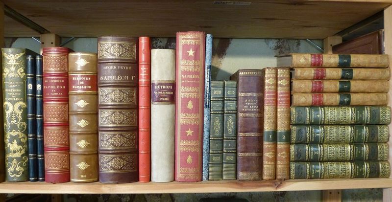 A Paris,Buissot,1807. Quattro tomi.Legature coeve in piena pelle. figurato.Si uniscono altre tredici opere in volume singolo o più volumi di argomento napoleonico,figurati e in belle legature.