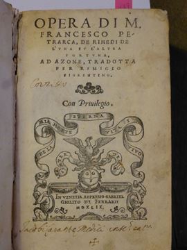 Francesco Petrarca De rimedi de l'una e dell'altra fortuna..Tradotta per Remigio Fiorentino