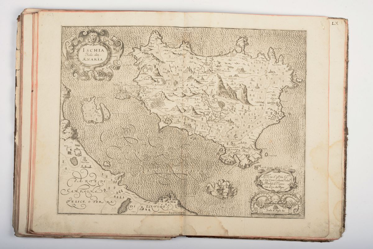 Italia..In Bologna,Presso Clemente Ferroni,1630. (1620 sul frontespizio calcografico). Seconda edizione di questo bell'atlante dell'Italia. Frontespizio inciso,ritratto dell'autore e sessanta(su sessantuno) carte geografiche. Manca la carta della Riviera Ligure di Ponente. Copia genuina ma che presenta numerosi difetti da umidità e strappi ad alcune carte. Legatura in mezza pelle con gravi difetti al dorso. Esemplare parzialmente sciolto.