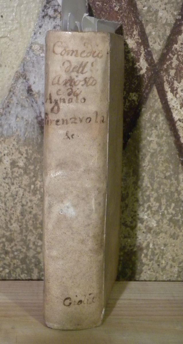 In Vinegia,Giolito,1562-1570-1562-1561-1560-1560. Legatura antica in pergamena floscia.Rotta la cerniera posteriore interna.Ultimo quaderno sciolto. Bell'esemplare di questa raccolta di commedie rinascimentali. Ex libris Durazzo al frontespizio.
