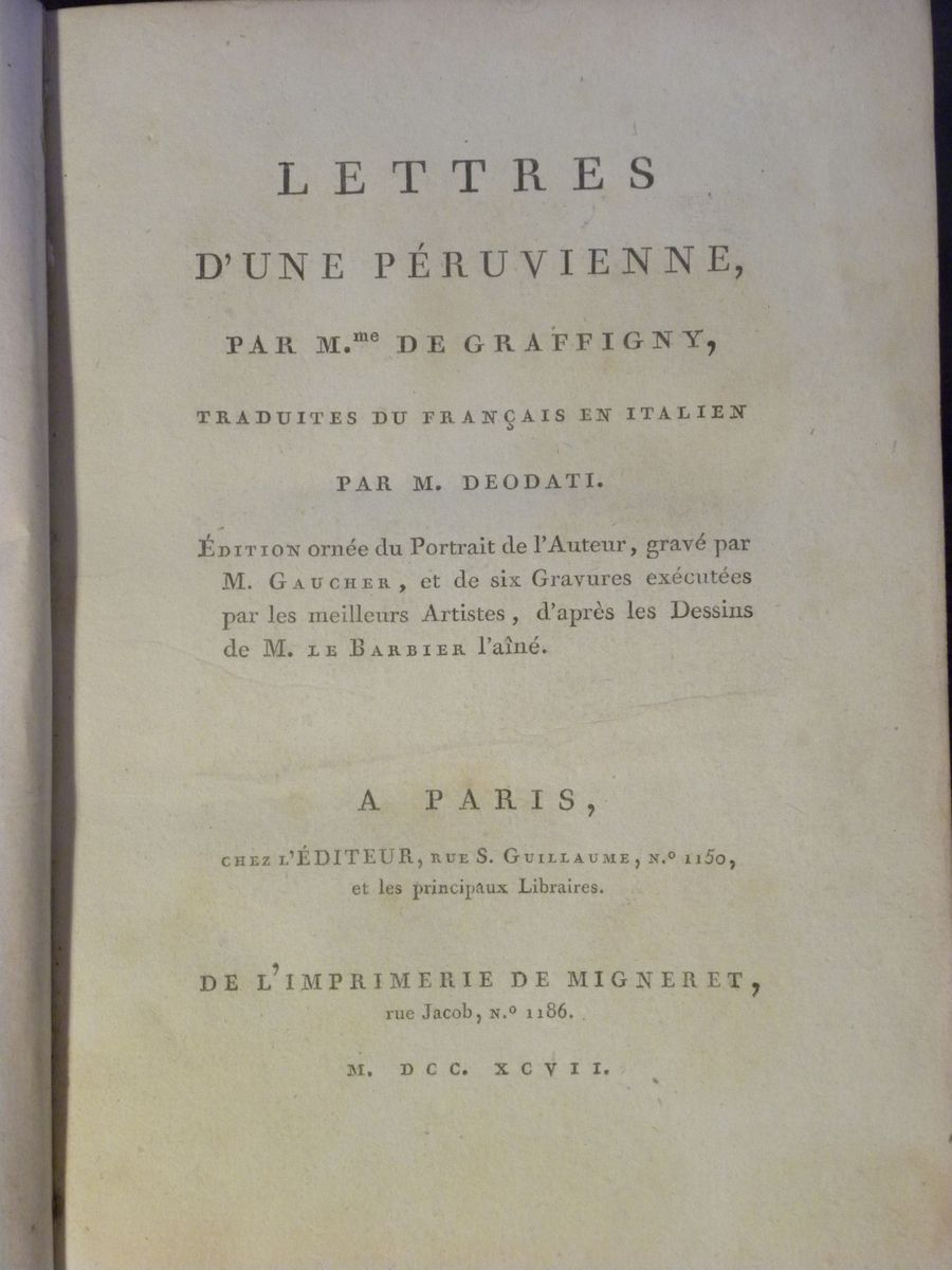 M.Deodati- M.me de Graffigny Lettres d'une peruvienne, par M.me Graffygny, traduites du francais en italien par M.Deodati [..]