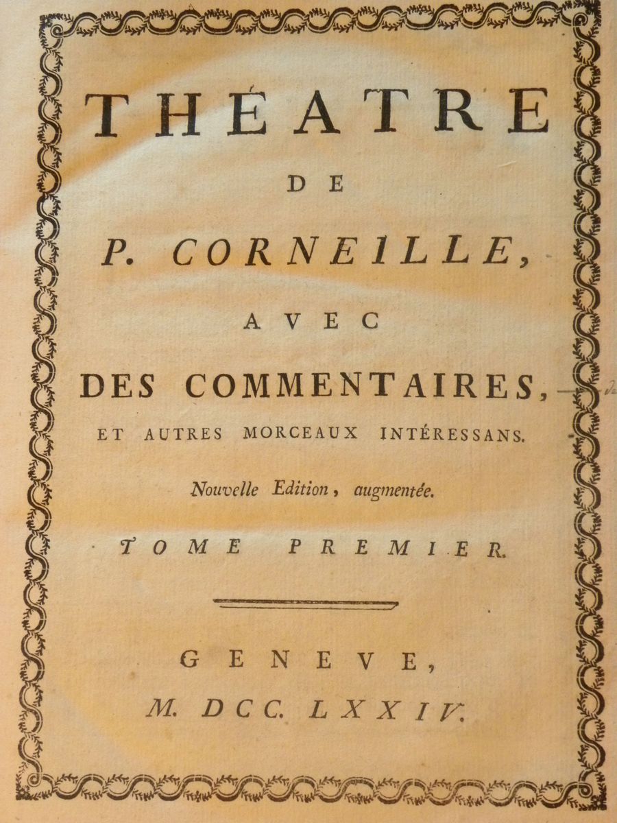 Pierre Corneille Theatre..avec des commentaires et autres morceaux intéressans..Nouvelle Edition, augmentée..