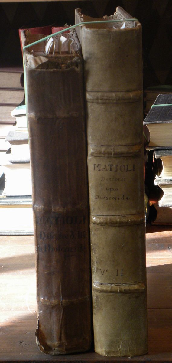 Venezia,Appresso,Felice Valgrisio,1585(Primo volume) e Venezia,Bartolomeo deli Alberti,1604(Secondo volume).Esemplare completo dei due volumi ma in due edizioni diverse. Mancano diverse carte,sia al primo che al secondo volume. Tuttavia rimane il fascino di queste magnifiche incisioni botaniche di grandi dimensioni. Venduto come una collezione di stampe.