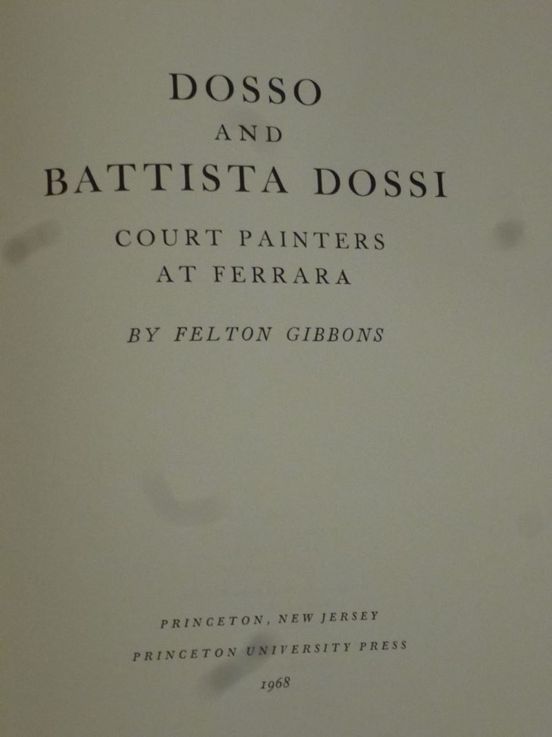 Lotto di opere miste di Pittura Italiana ed Europea (39 volumi tot). Tra cui: Felton Gibbons, Dosso and Battista Dossi. Court Painters at Ferrara. Princeton (New Jersey), Princeton Univeristy Press, 1968. Due volumi. / John Shearman, Andrea Del Sarto. Oxford, Oxford University Press, 1965. Due volumi.