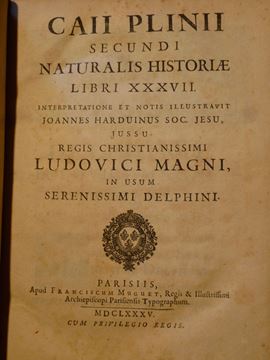Plinio Caio Secondo Naturalis historiae libri XXXVII. interpretatione et notis illustrativit Joannes Harduinus..
