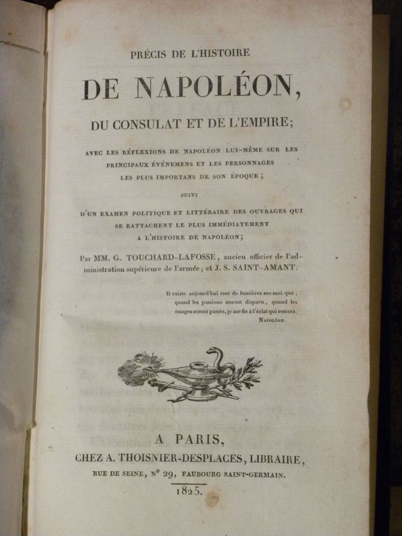 Milano,Pagnoni,s.d. Legature coeve in mezza pelle. In-8°.Due volumi figurati. Nel lotto anche:Gallois,Leonard - Histoire de Napoleon d'apres lui-Meme..Paris,C.Bèchet,1825 e Touchard-Lafosse - Precis de l'histoire de Napoleon,du Consulat et de l'Empire..Paris,Thoisnier,1825. Legature in piena pelle, coeve.