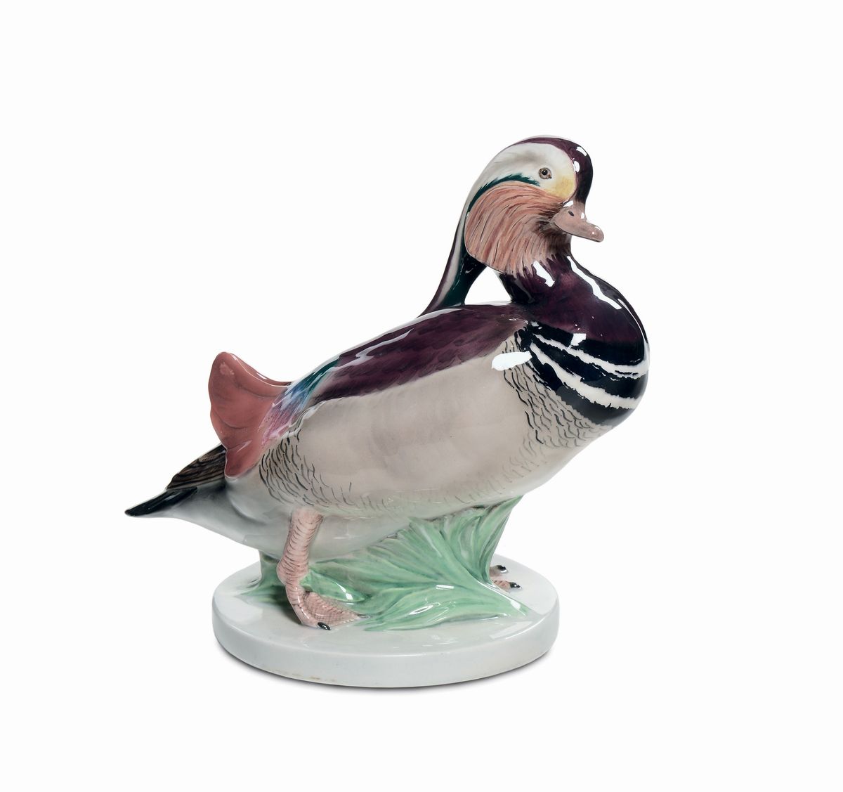 Terracotta maiolicata formata a colaggio decorata in policromia sotto vernice. Sotto la base: Lenci Made in Italy Torino e simbolo grafico del decoratore Beppe Ferinando. Altezza cm 27