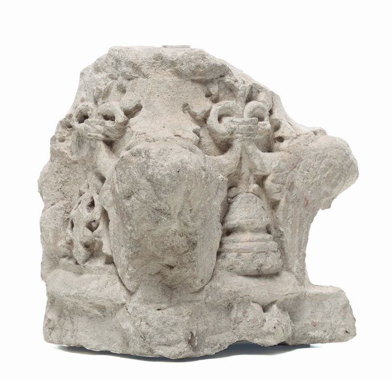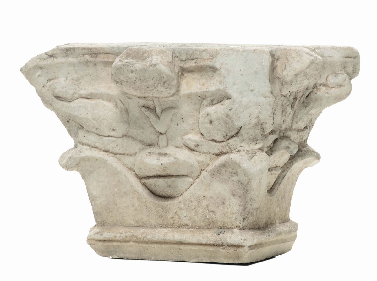 Capitello in marmo scoplito con delfini, XVI secolo