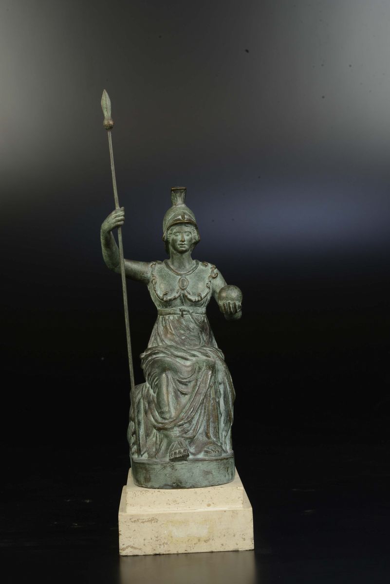 Figura di Atena Pallade in bronzo patinato, fonditore romano del XX secolo