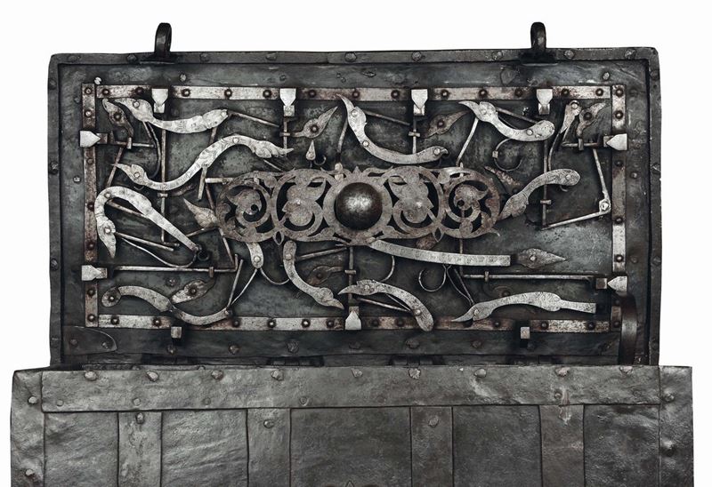 Forziere in ferro fuso, battuto, traforato e cesellato, Lombardia XVI secolo