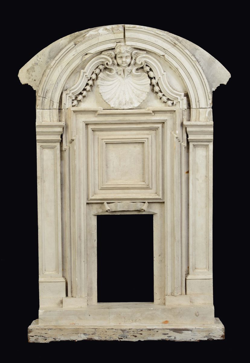Modello architettonico di facciata barocca in gesso, plasticatore italiano del XVIII secolo