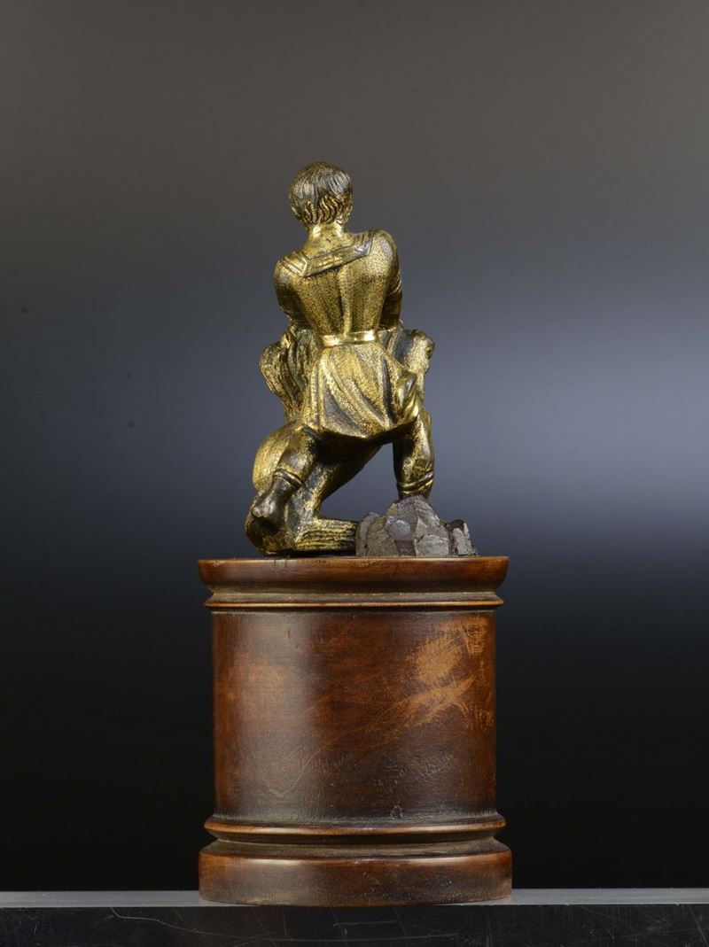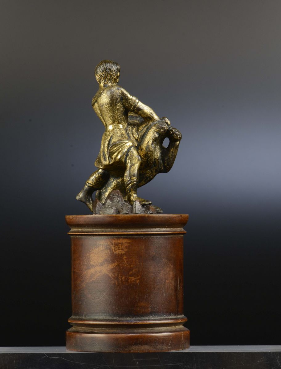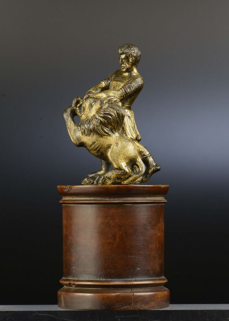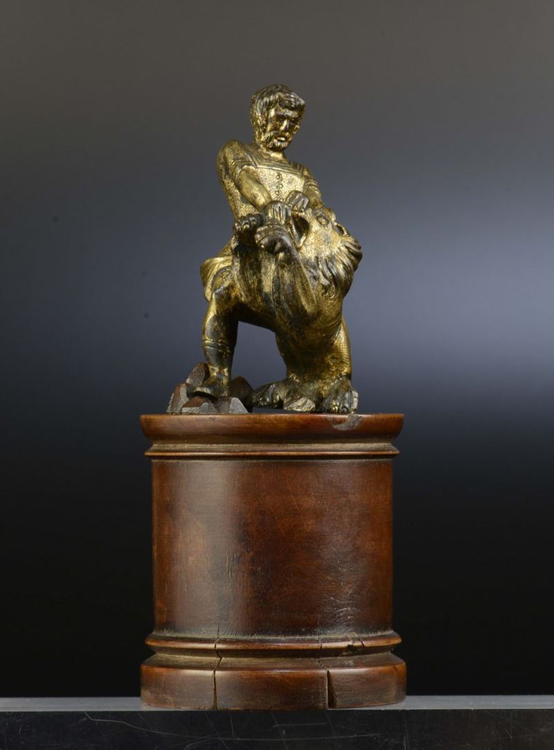 Scultura in bronzo fuso, cesellato e dorato raffigurante Sansone che squarcia il leone, Germania XVI-XVII secolo