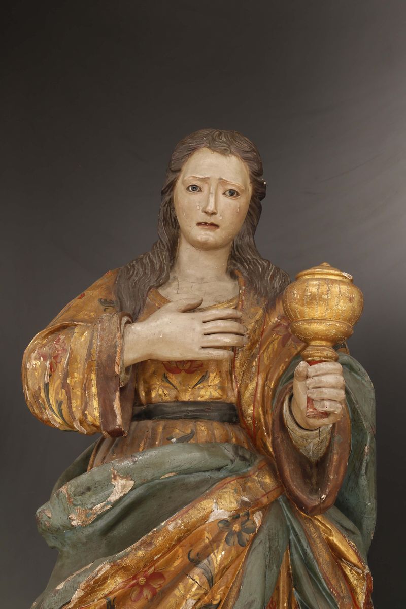 Scultura in legno policromo raffigurante Maria Maddalena, Scultore dell’Italia meridionale operante nel XVI secolo