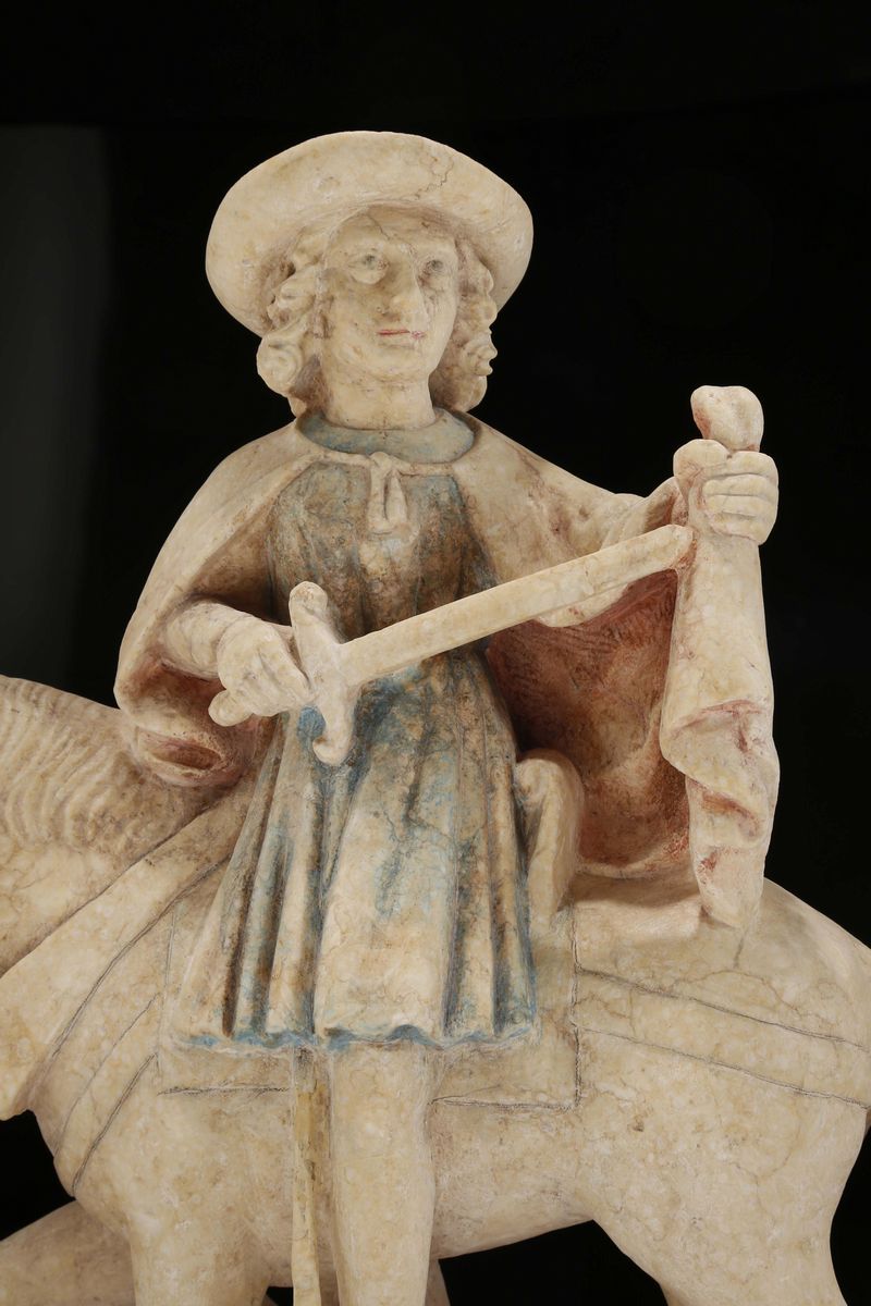 Scultura in pietra policroma raffigurante S.Martino, Francia, Borgogna, XVI secolo