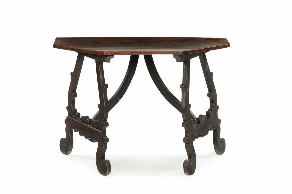Semitavolo con piano pentagonale in noce, Italia centrale XVII-XVIII secolo