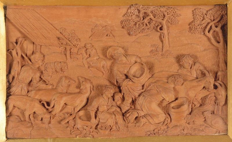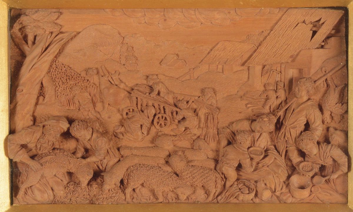 Serie di quattro altorilievi scolpiti in legno di bosso raffiguranti le quattro stagioni, intagliatore del nord Italia o di area germanica del XVIII secolo