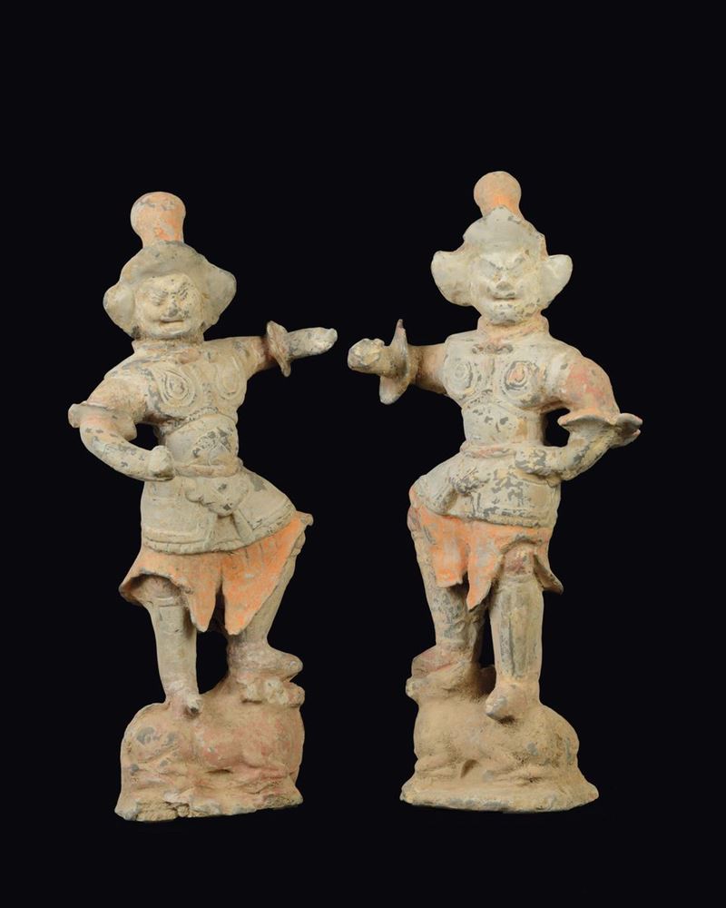 Coppia di guerrieri in terracotta dipinta, Cina, Dinastia Tang (619-906 d.C.)