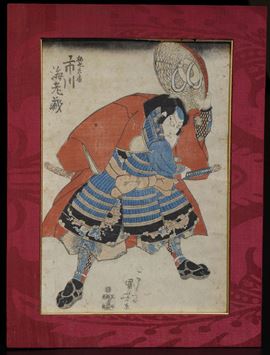 Dipinto su carta di riso raffigurante Samurai con iscrizioni, Giappone, XIX secolo